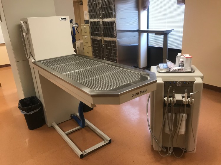 In the Surgical Suites, we also have a Dental Table and new Dental PRO machine that were both locally made at Midmark in Versailles, OH. This table allows us to clean the animals teeth and examine for any issues within the mouth.The Lift Wet Table allows for any fluids to go down in the drain and allow for a clean workspace for our veterinarian.